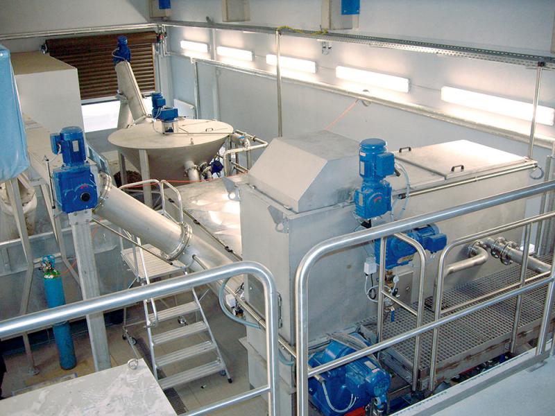 Der unbelüftete Sandfang ist in Bezug auf die Abscheidung mineralischer Feinstanteile nach DWA-Richtlinien ausgelegt. Die maschinelle Sandräumung übernimmt eine Transportschnecke.