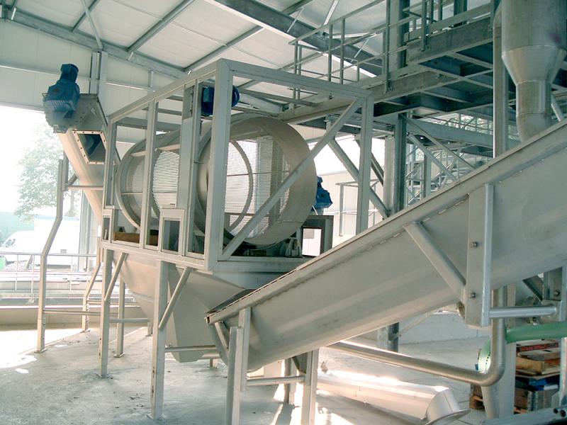 Die Siebtrommel kann wahlweise über eine Druckleitung, einen freien Zulauf oder über einen Schneckenförderer beschickt werden.
