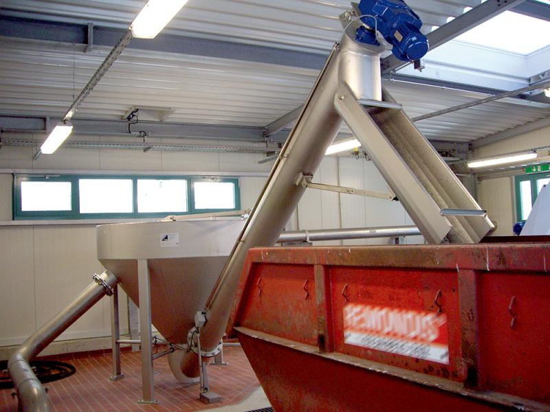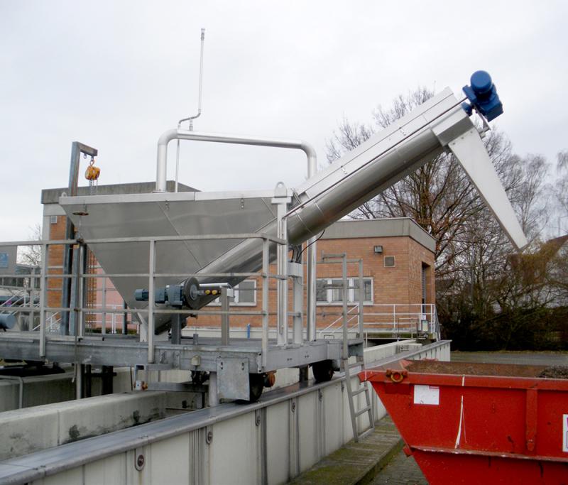Inflow of the grit/water mixture can be either under pressure or via gravity line. The tangential feed induces a rotary movement in the water which causes (Type SK) the heavier substances such as sand to sink to the apex of the tank, where they are removed and dewatered via the screw conveyor. The grit is thus rendered substantially free of organic matter.