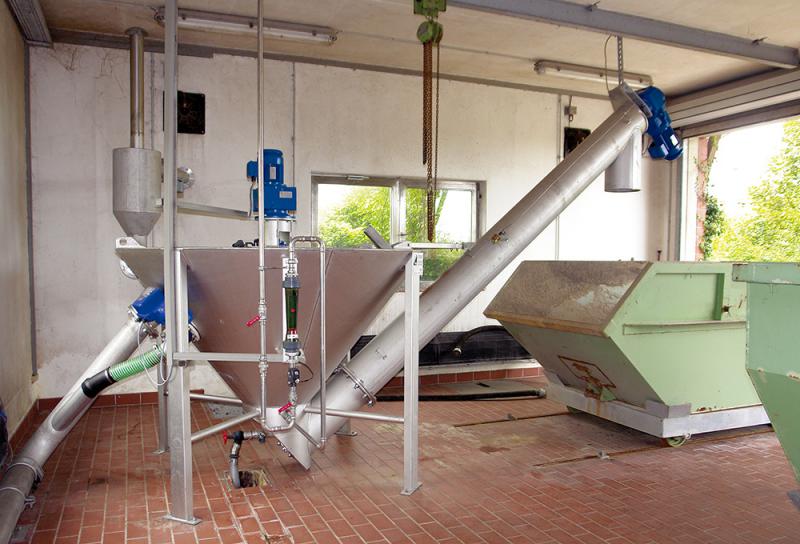 The grit/water mixture is fed in via the inlet flange of the grit wash tank. Organic matter is held in suspension and floated off while the grit is sedimented in the tank. With the addition of water, the sedimented grit is separated from the remaining organic constituents using a stirring device and up-current technique. The grit is removed from the tank, de-watered and discharged via a discharge screw.