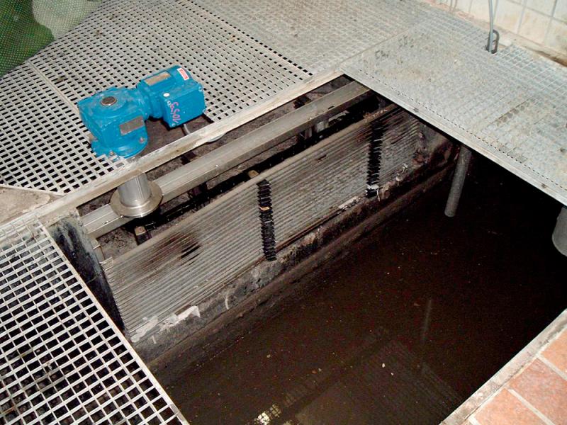 Screenings are not discharged, but remain in the water. The drive is located above the water level and the drive chains are protected by the screen grid. The screen grid can be arranged in modular design, enabling installation to be carried out through small openings. The small gap widths of the screening surface and absence of sharp edges enable the requirements of fishery associations to be fulfilled.
