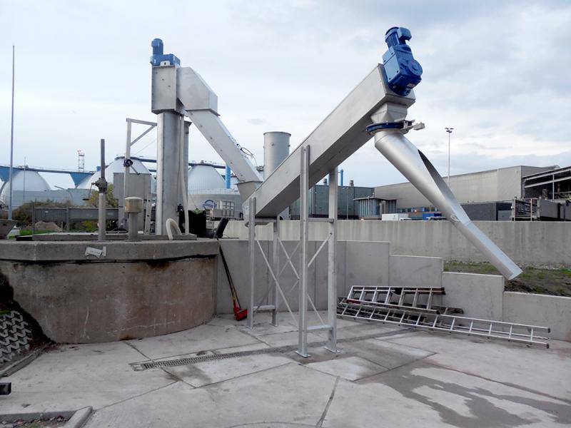 The screw is designed in the dewatering zone with shaft to reduce the wear and prevent a blockage.